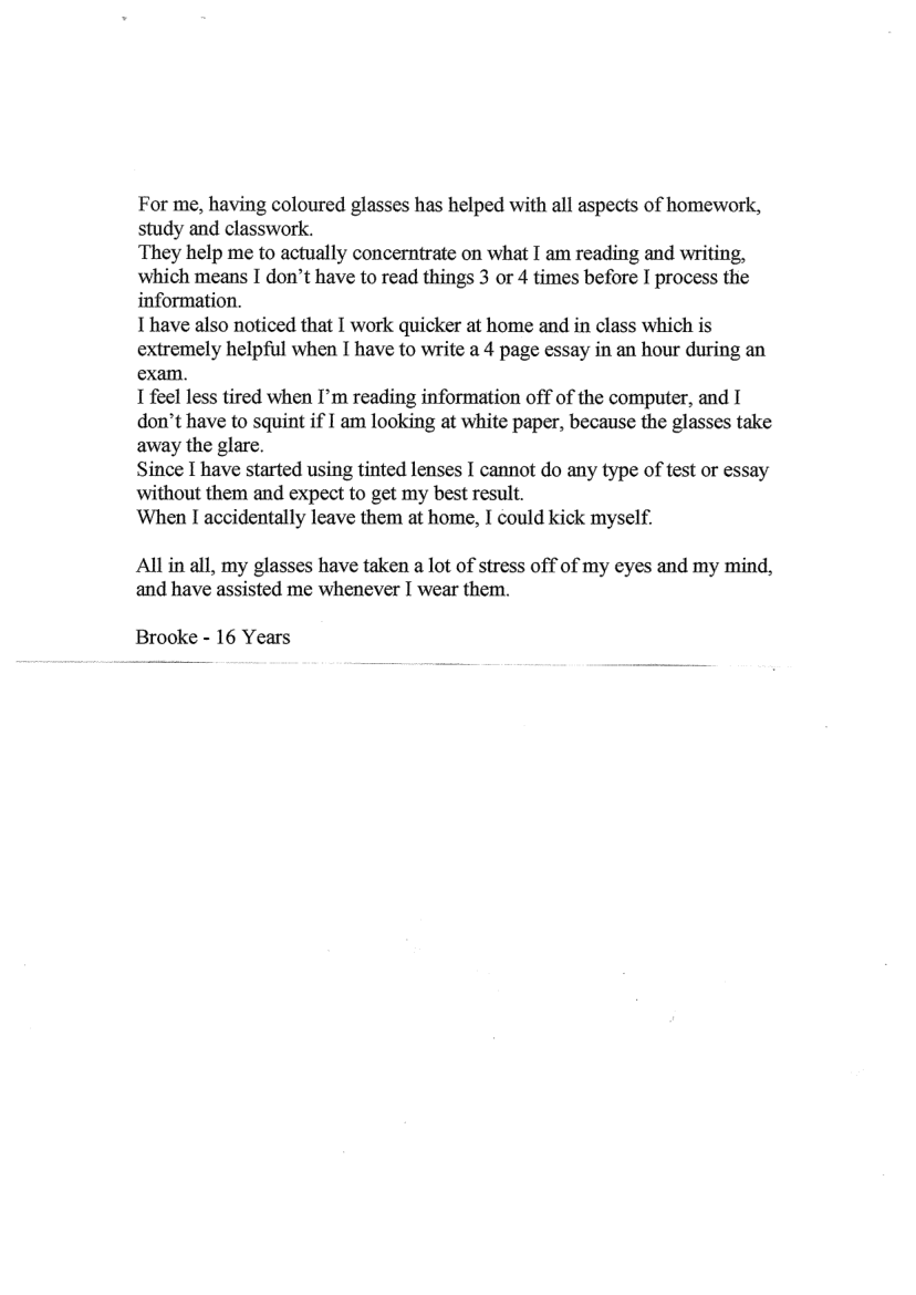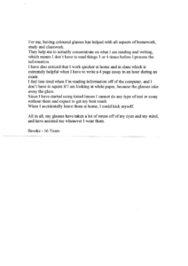 “For me, having coloured glasses has helped with all aspects of homework, study and classwork”